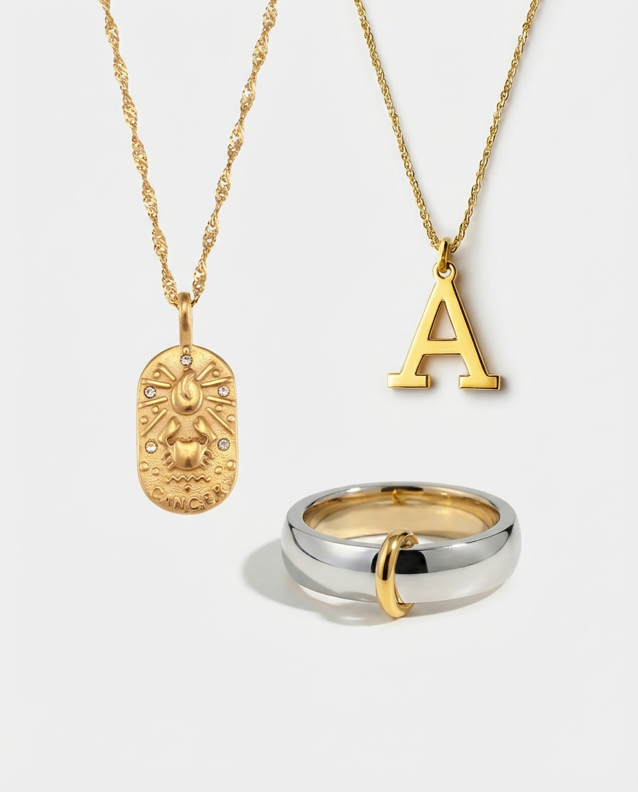 Designed to feel thoughtful and refined, The Personalized Gift Set layers meaningful detail with clean gold finishes for an elevated everyday stack.