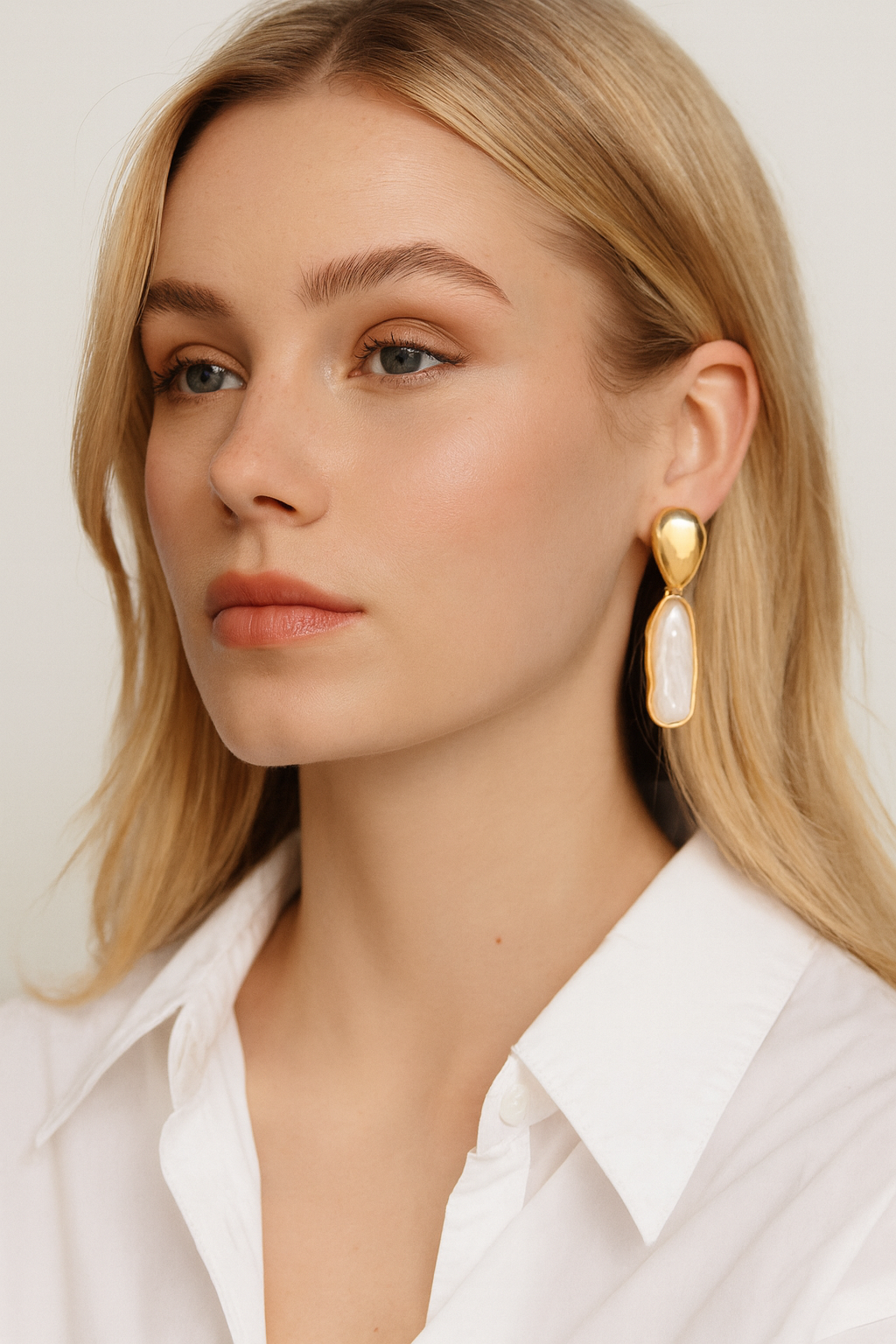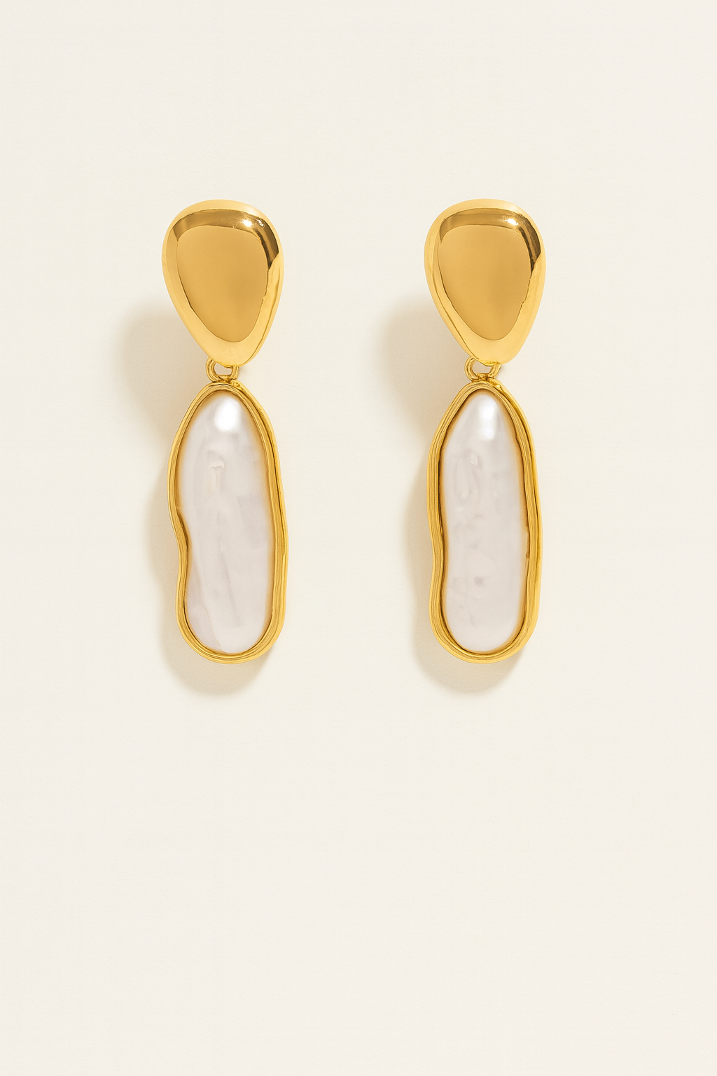 Elegant with a modern twist. These drop earrings feature irregular freshwater pearl silhouettes framed in molten gold. A statement piece that feels elevated, effortless, and unique.
