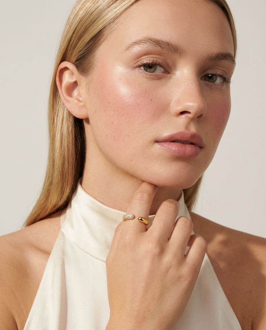 Sculptural, striking, and effortless. The Noa Ring is your new everyday statement. Featuring a bold, asymmetrical wrap design, it pairs high-shine polish with pavé crystal detailing for that perfect balance of edge and elegance. Lightweight and resizable for a perfect fit, it’s the kind of piece you’ll reach for again and again.
