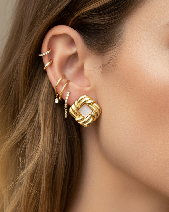 Crafted from waterproof, hypoallergenic 316L stainless steel and finished in 18K gold PVD plating, they’re lightweight yet statement-worthy. Perfect for everyday confidence or elevated evenings.