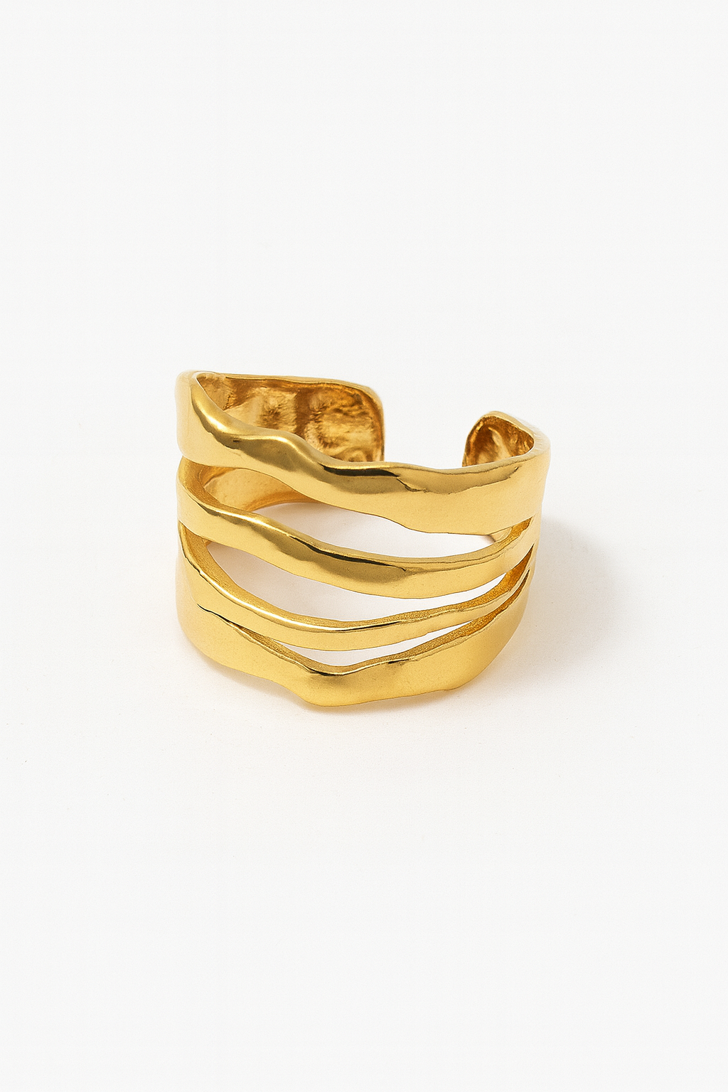 Light, sculptural, and effortless. This gold-tone open ring features flowing, wave-like lines for a modern, airy silhouette. Adjustable fit makes it perfect for everyday stacking.