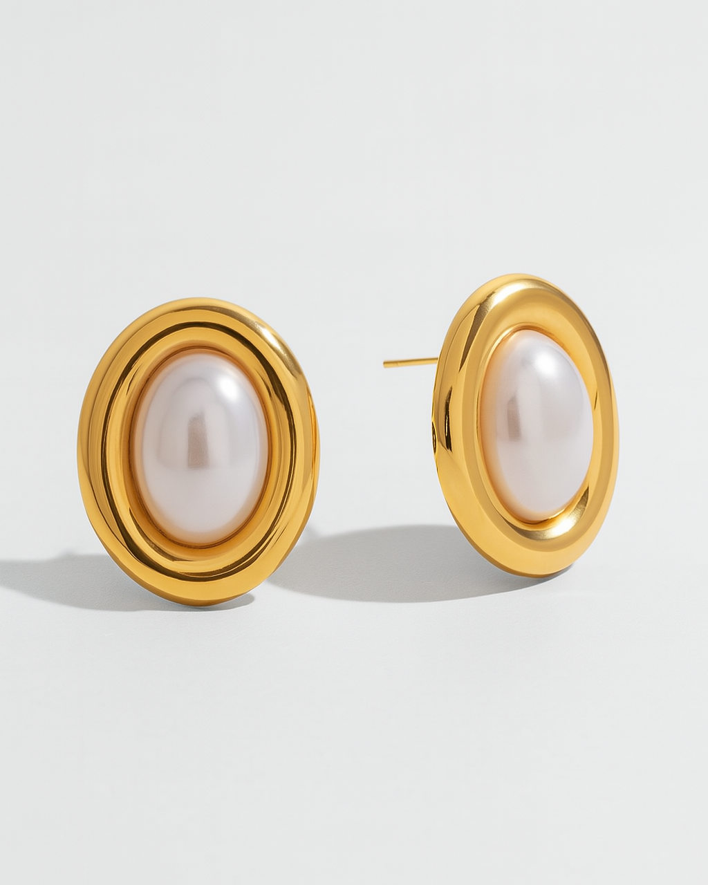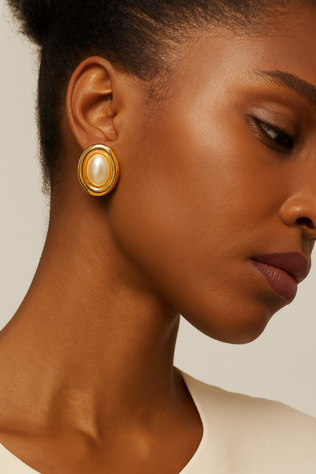 Bold. Clean. Elevated. The Colette Earrings are a love letter to vintage glamour with a modern French twist. Featuring a sculptural gold frame and glossy pearl centre, they bring effortless polish to everything from oversized blazers to slip dresses.