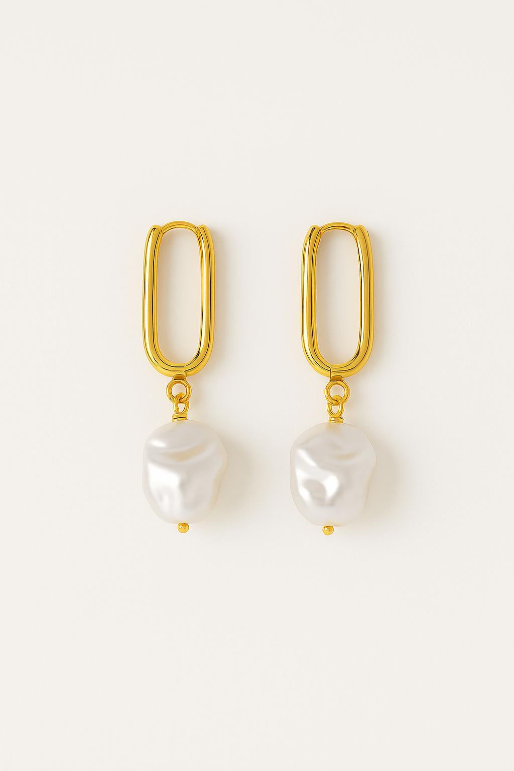 Slip into oceanic elegance with the Élina Earrings. Featuring slender oblong hoops and organically shaped freshwater pearls, this pair brings a soft, sculptural touch to any look. Crafted from s925 sterling silver plated in 18k gold, they are waterproof and hypoallergenic, making them perfect for everyday sophistication.