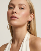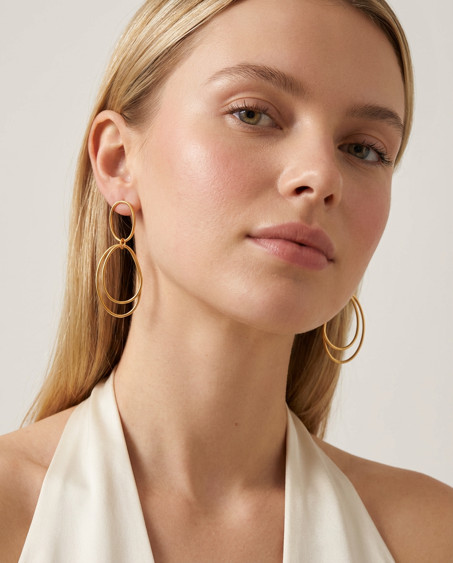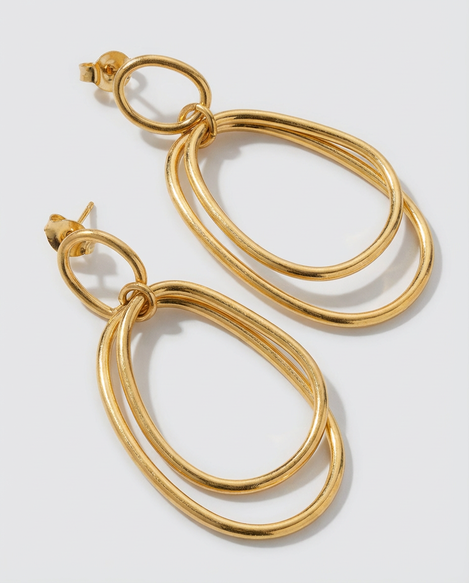 Designed with fluid interlocking loops that catch the light with every movement, these statement earrings add an instant touch of sophistication to any look. Lightweight and comfortable for all-day wear, they transition seamlessly from day to night.