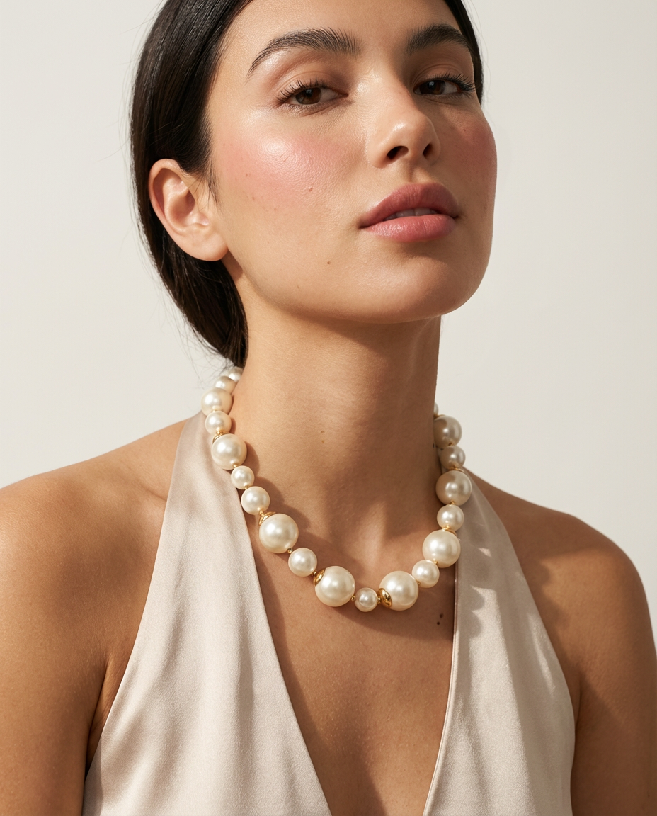 Pearls but make them bold. These chunky oversized pearl beads with gold spacers are giving old money energy at a very new money price. The mixed sizing is what sets this apart. It's got weight, presence and serious outfit power.