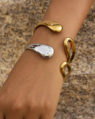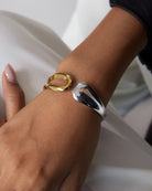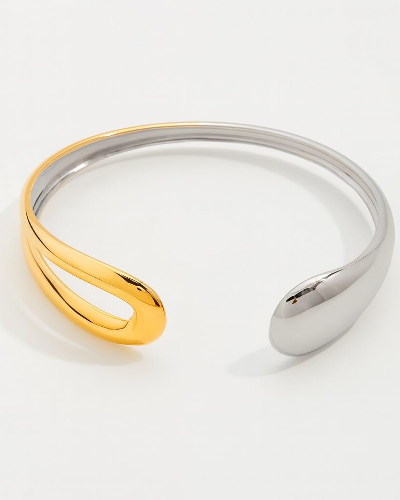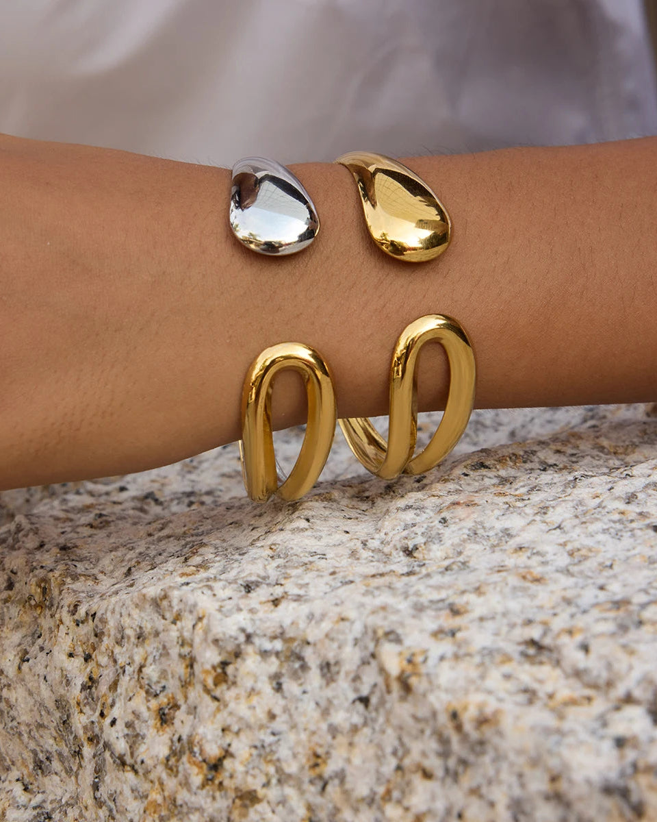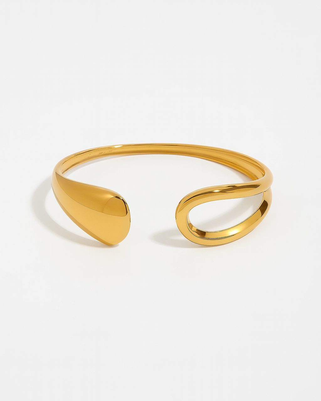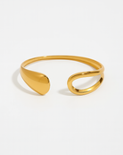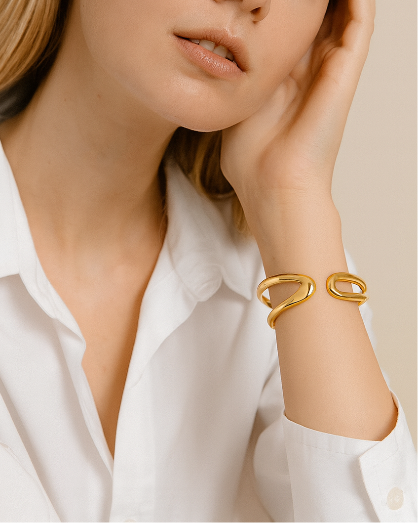 Sleek, modern, and bold. This open cuff wraps your wrist in fluid curves for a minimalist statement you’ll reach for daily.