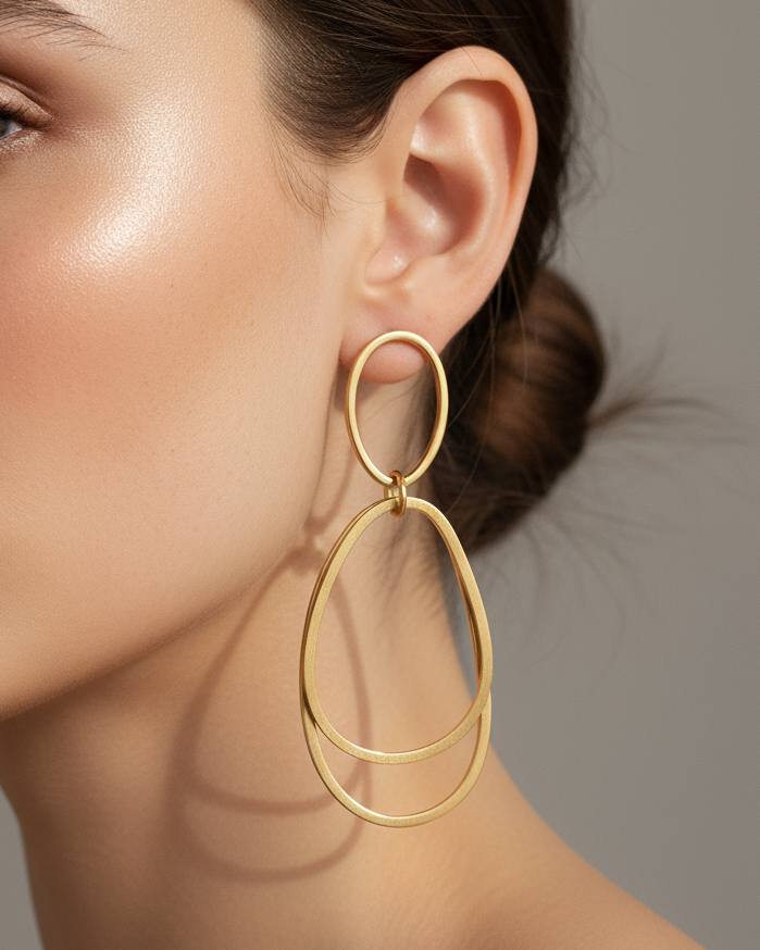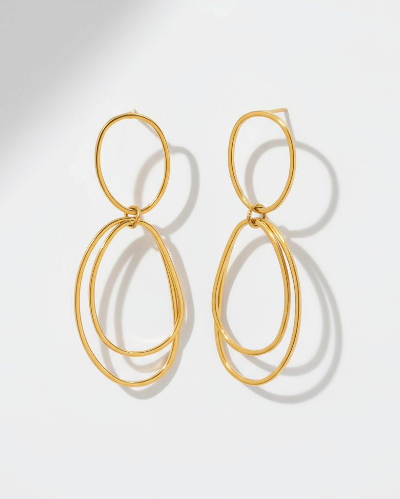 Designed with fluid interlocking loops that catch the light with every movement, these statement earrings add an instant touch of sophistication to any look. Lightweight and comfortable for all-day wear, they transition seamlessly from day to night.