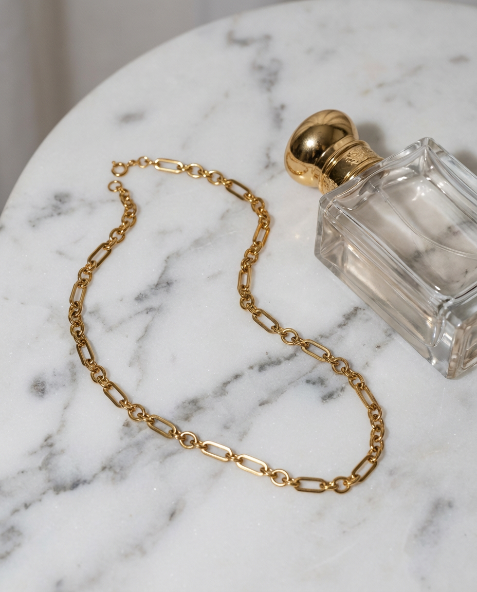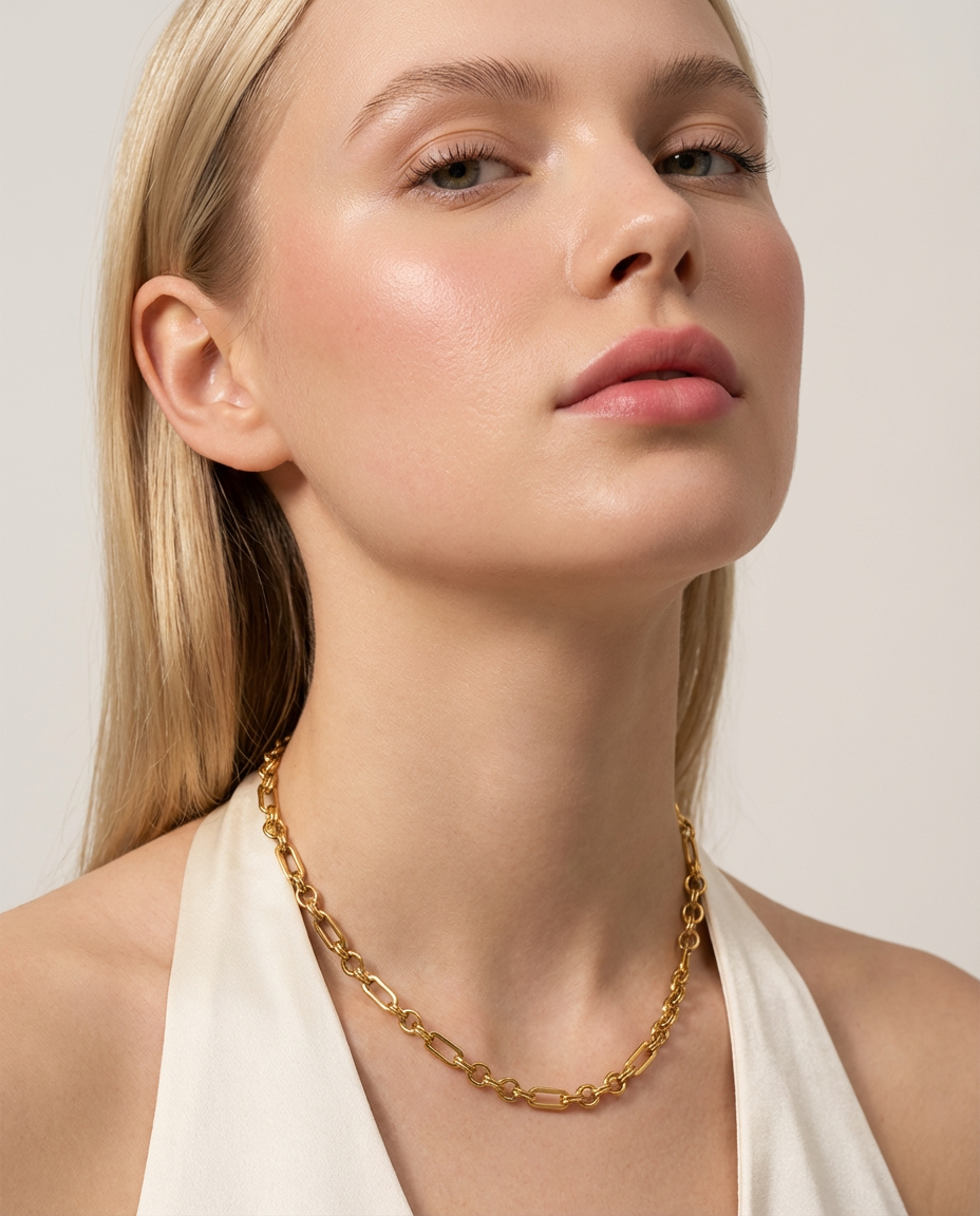 Timeless gold link necklace with a polished finish, designed for effortless everyday elegance.