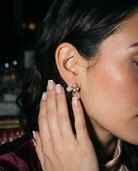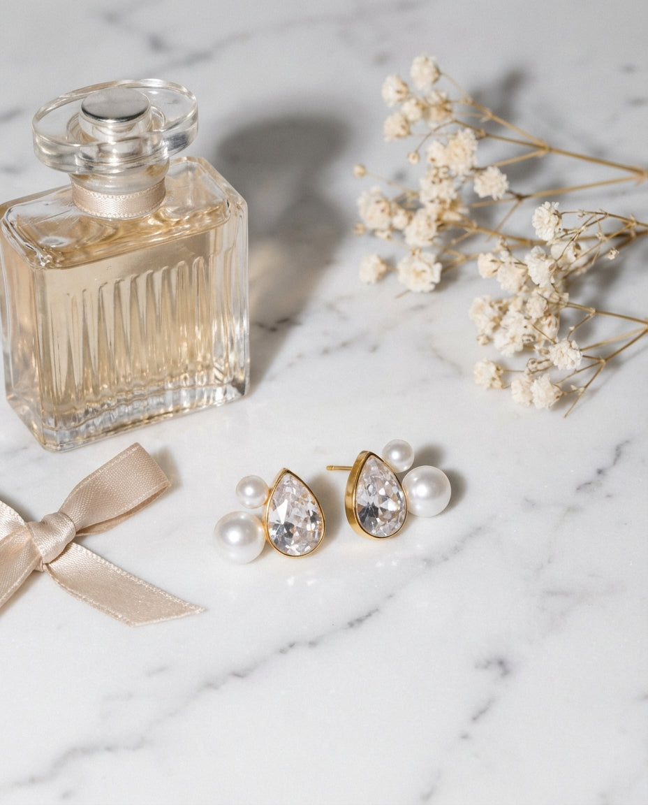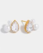 Elegant water drop stud earrings with imitation pearl and crystal detailing for a refined finish.