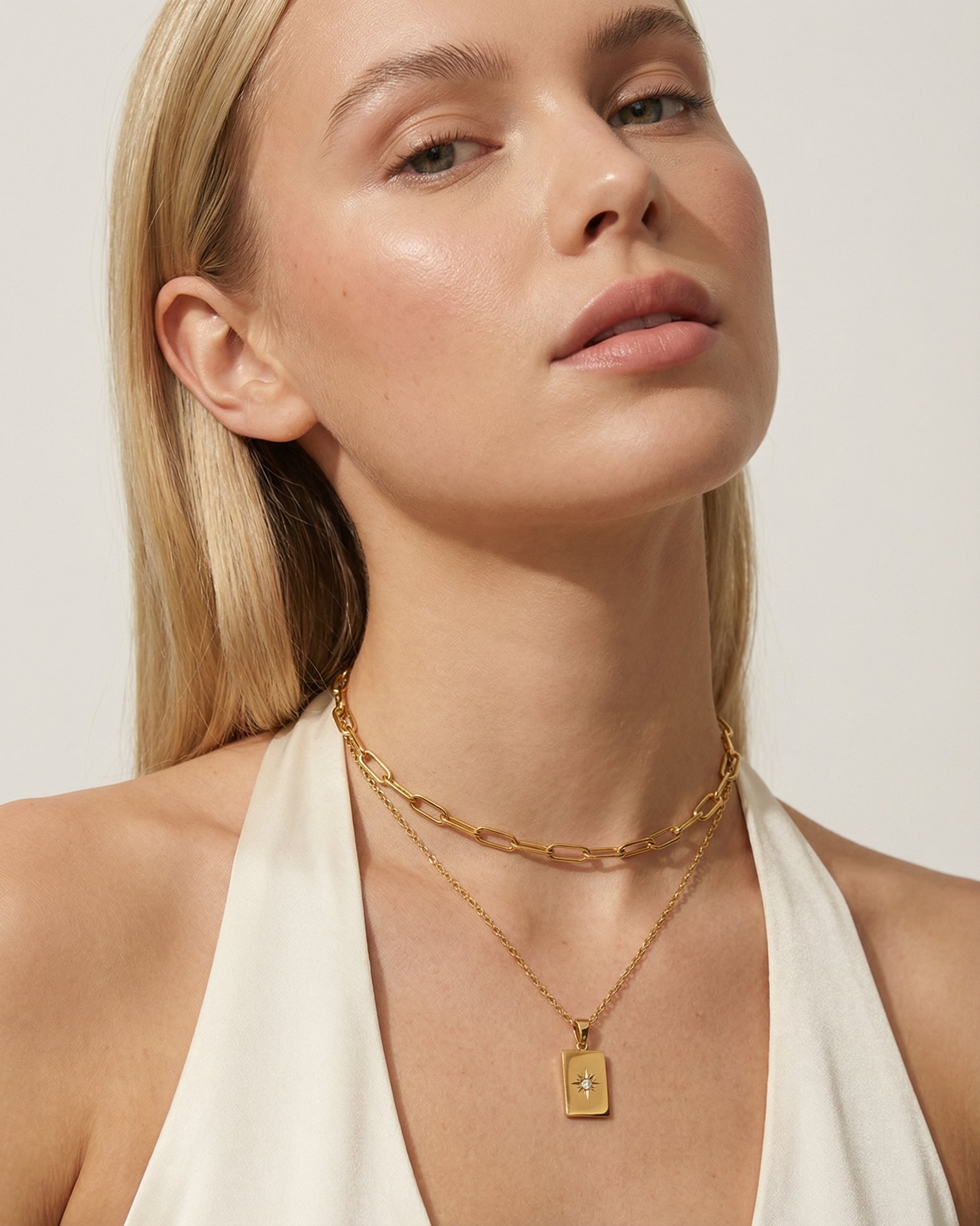 Our jewellery is crafted with 18K gold PVD plating on premium 316L stainless steel, making it 100% waterproof, sweat-proof, heat-resistant and 10× more durable than traditional gold-plated pieces.
