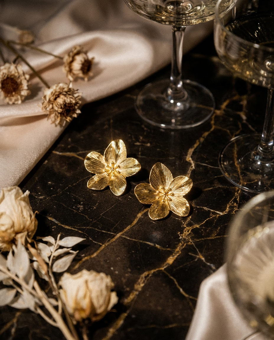 Add a touch of natural beauty to your style with the Naia Earrings. Inspired by delicate floral designs, these stunning earrings are crafted from gleaming 18k gold-plated stainless steel, giving them a timeless and elegant look. Comfortable for all-day wear, they are hypoallergenic and gentle on the skin. With their durable, water, sweat, and heat-resistant properties, they’re perfect for any occasion.