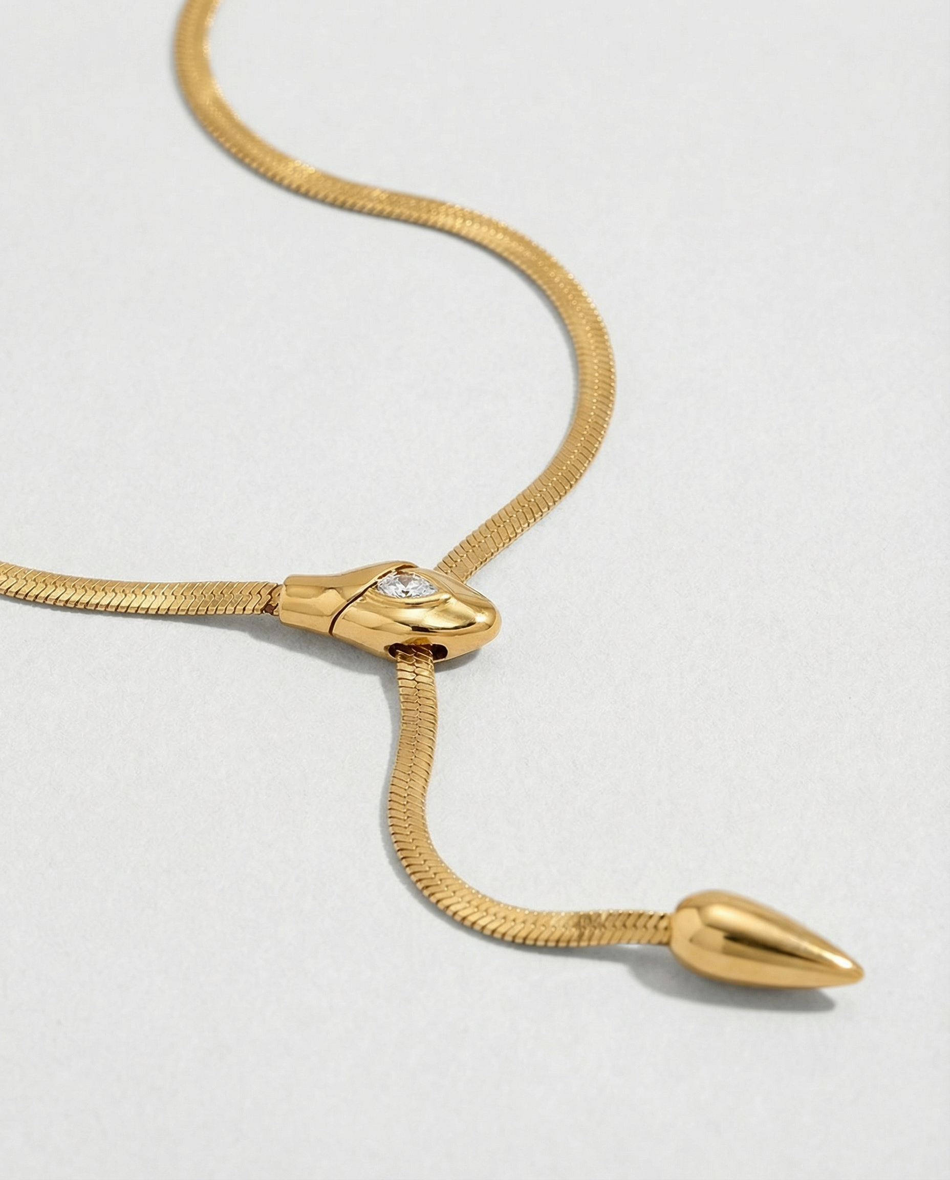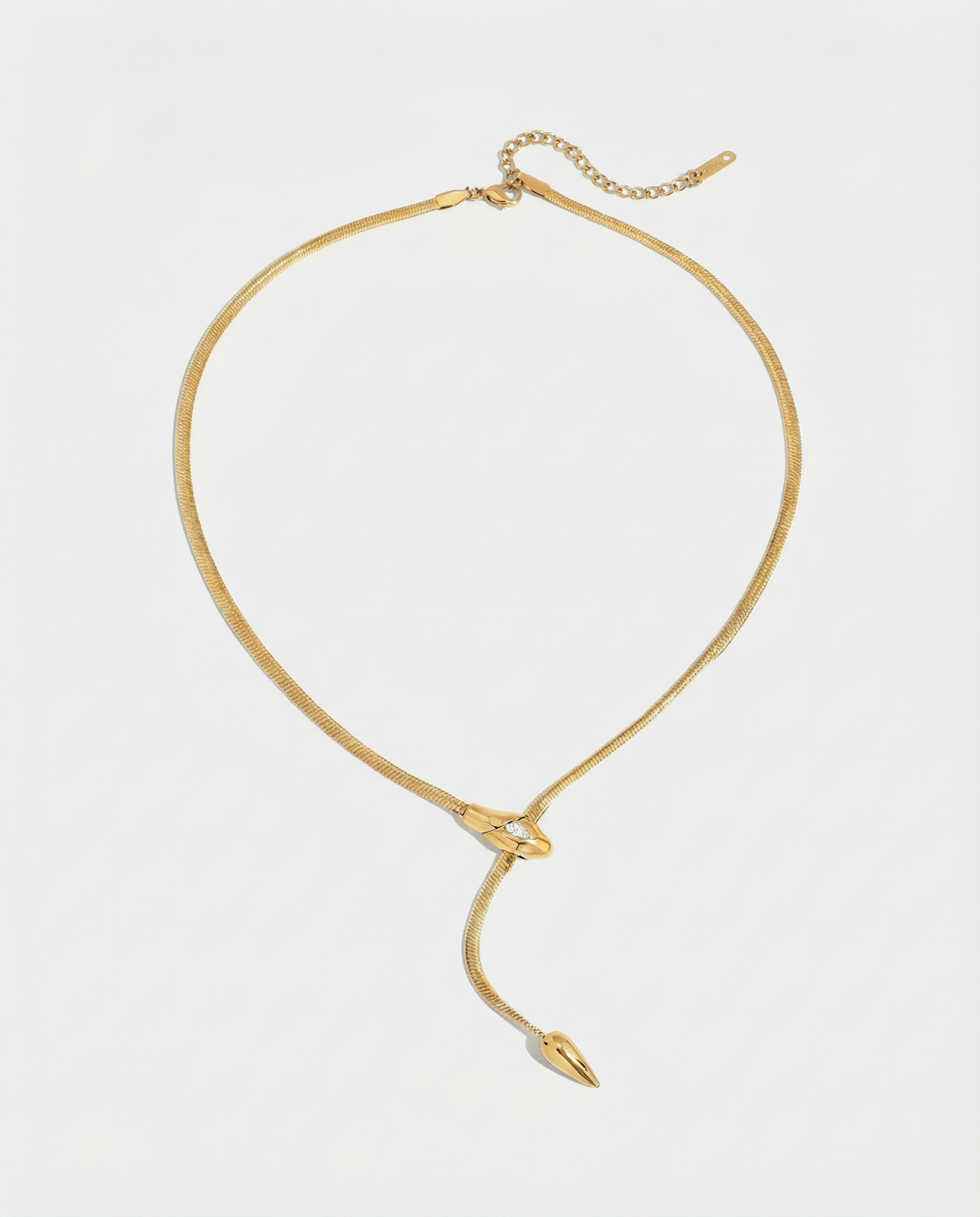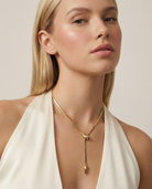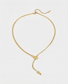 Crafted from 18K PVD gold-plated stainless steel, this adjustable lariat design features a sculptural drop and subtle AAAAA diamond simulant accent for a refined edge. Fully waterproof, tarnish-proof, and hypoallergenic, it’s made to move with you.