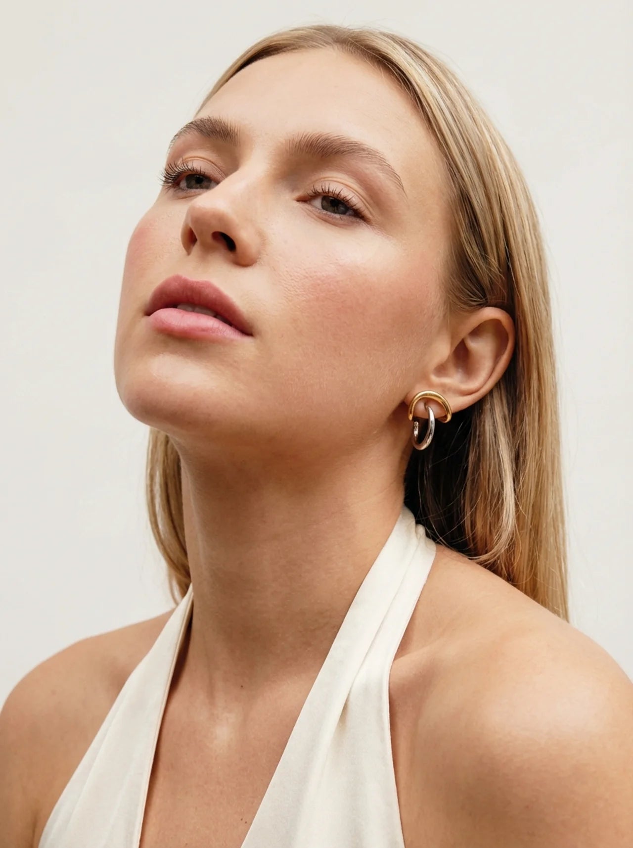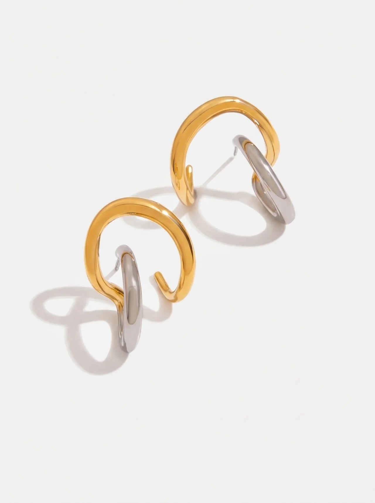 Modern two-tone stud earrings featuring an irregular wrapped hollow design for a bold yet minimalist statement.