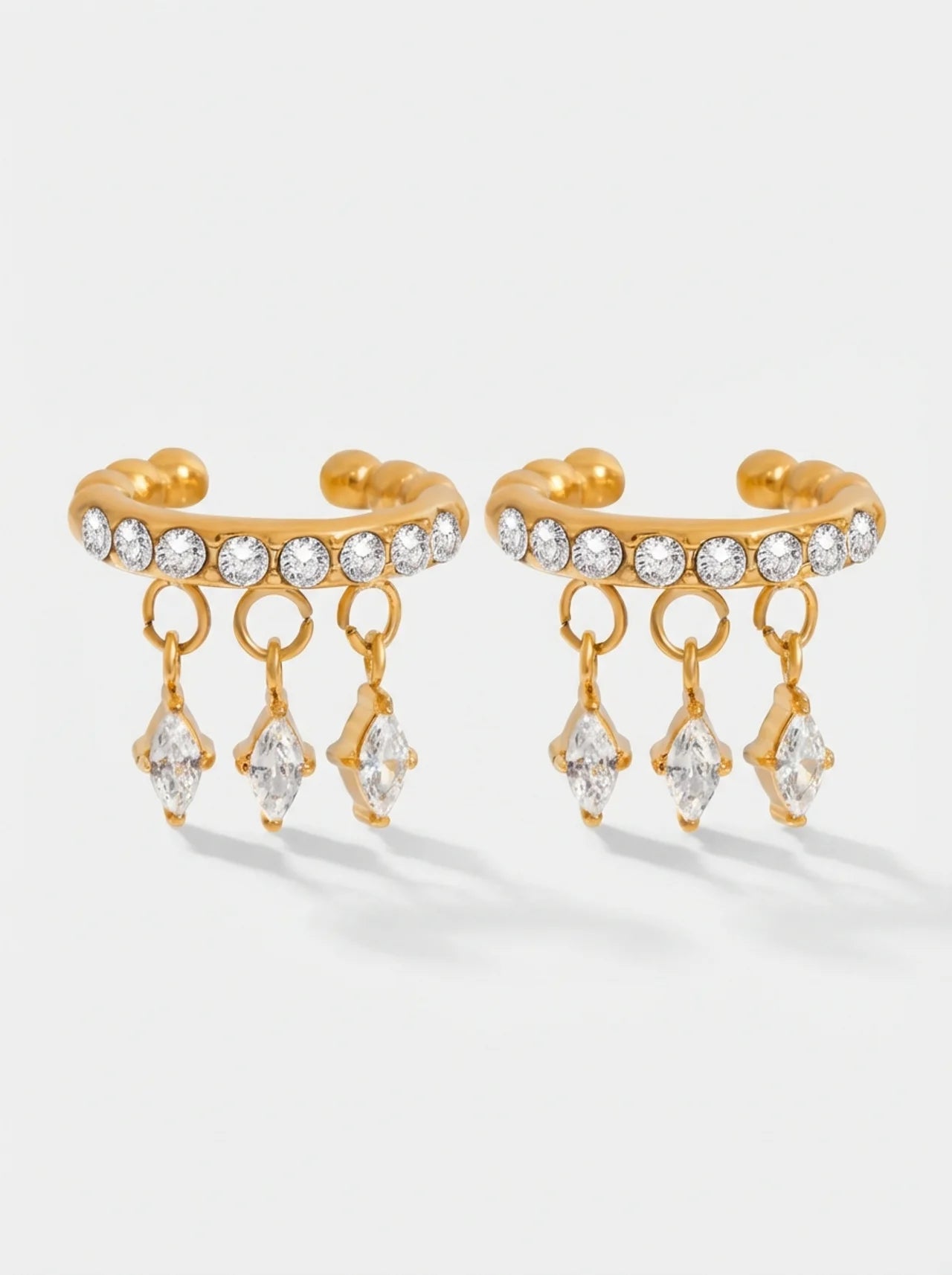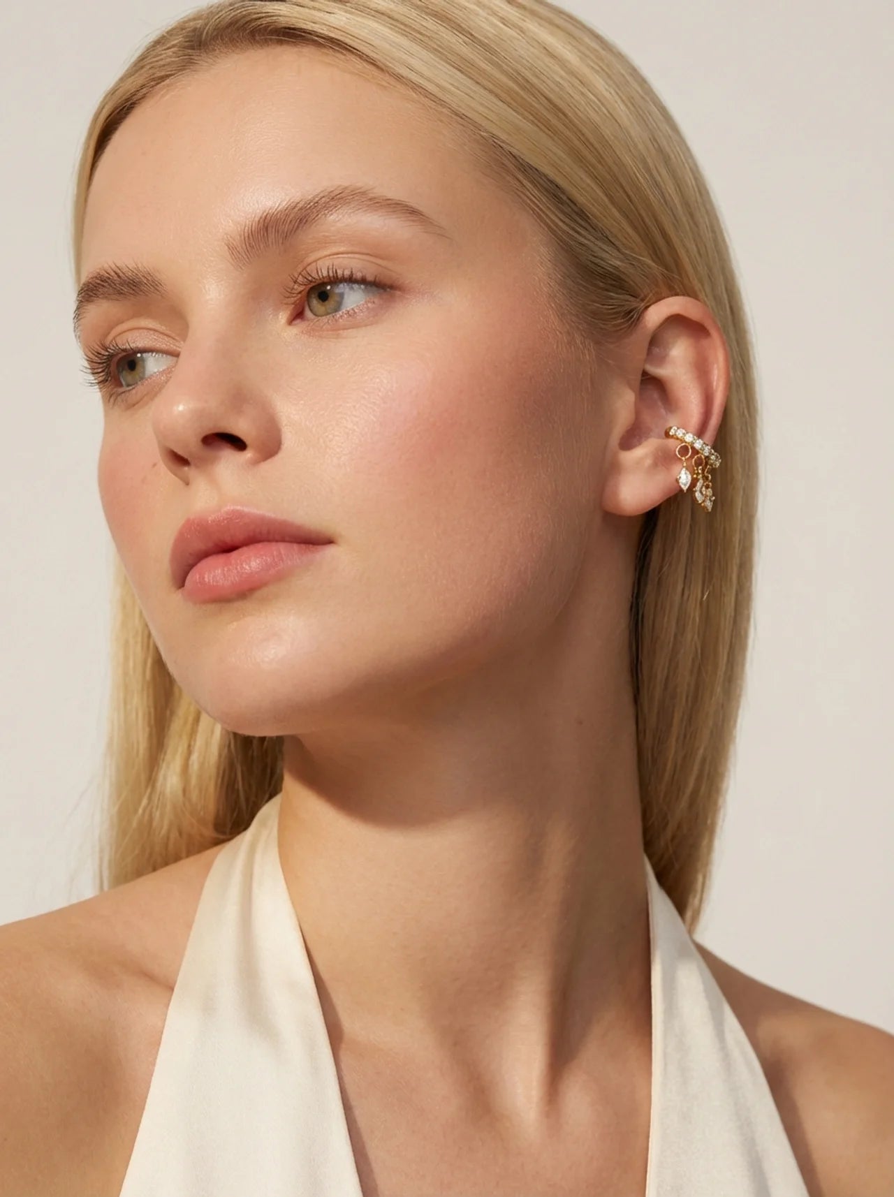 Elegant non-piercing ear cuff featuring a delicate zircon pendant detail, designed for effortless sparkle without pierced ears.