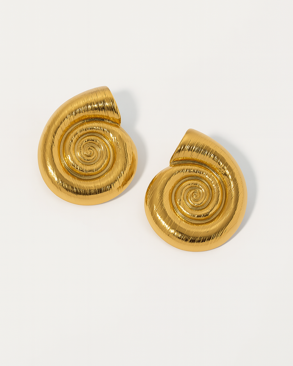 Sculptural and sun-drenched, the Odile Earrings channel beachy elegance with a vintage twist. With their brushed gold spiral design and lightweight feel, they’re made to catch the light and compliments.