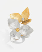 The Pavé Flower Ring is designed to symbolise femininity and soft elegance, featuring a delicate three-petaled silhouette with subtle crystal detailing.