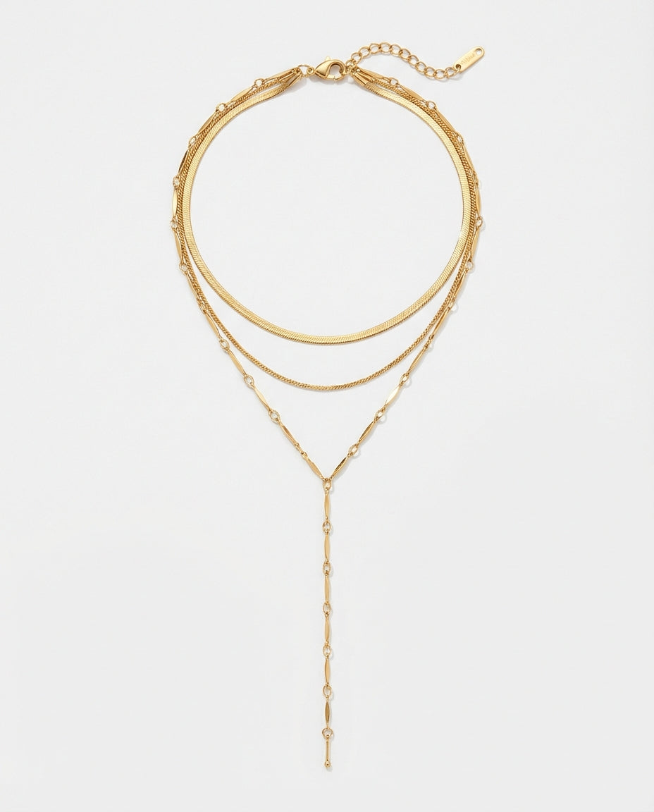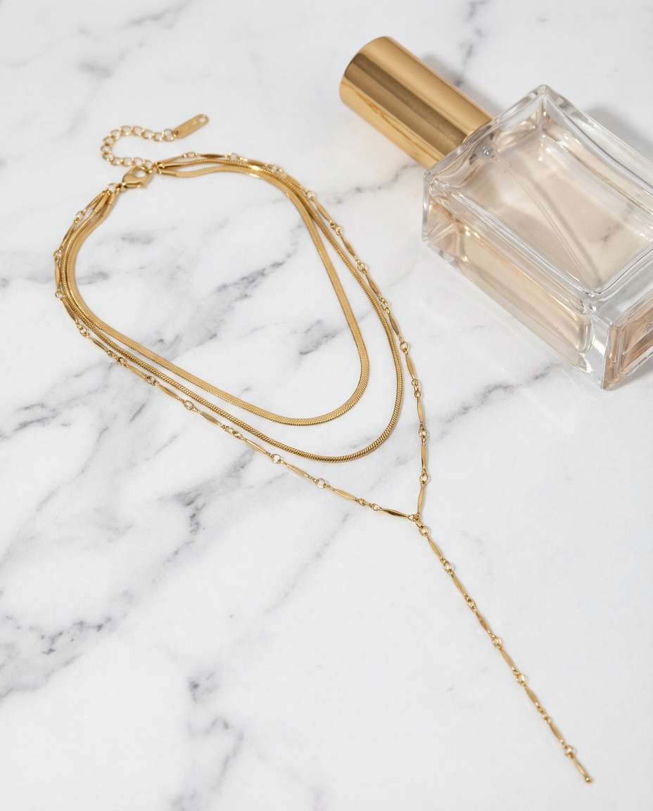 A sleek and minimalist Y-shaped multilayer chain necklace designed to elevate everyday and evening looks with effortless elegance.