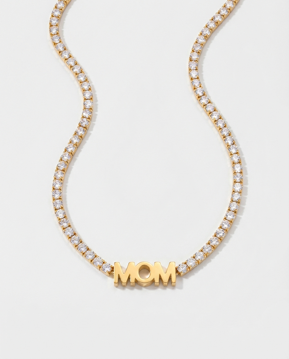 A timeless letter pendant necklace featuring a sparkling MOM design for a meaningful everyday statement.