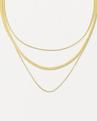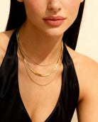 Effortless and polished, Éline features three delicate gold chains pre-layered for instant style. Crafted in stainless steel and plated in 18k gold, this piece is waterproof, hypoallergenic, and perfect for everyday wear.