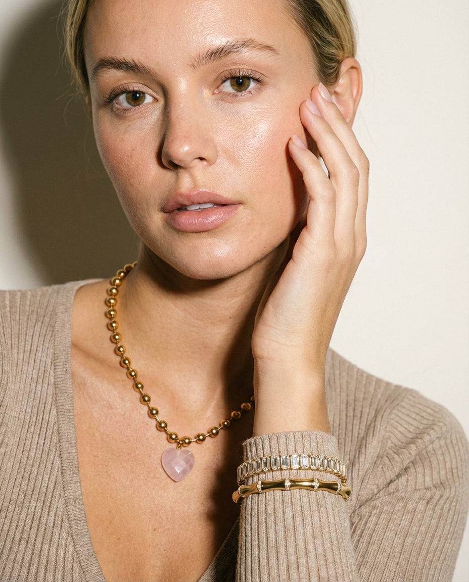 Our jewelry pieces are designed to be waterproof, so you can easily incorporate them into your daily routine without having to take them off! Apply any type of lotion, from moisturizer to sunscreen, without needing to remove your jewelry.