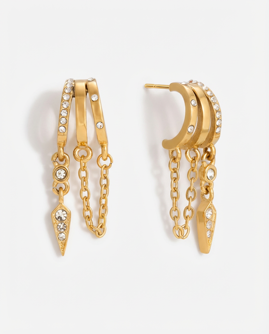 Minimalist C-shaped stud earrings with crystal detailing for a refined everyday sparkle.