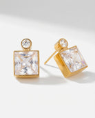 An oversized square crystal stud with a round accent. Bold, geometric, and genuinely impressive for a stud earring. The kind of earring that looks intentional even when you've thrown on a basic outfit.