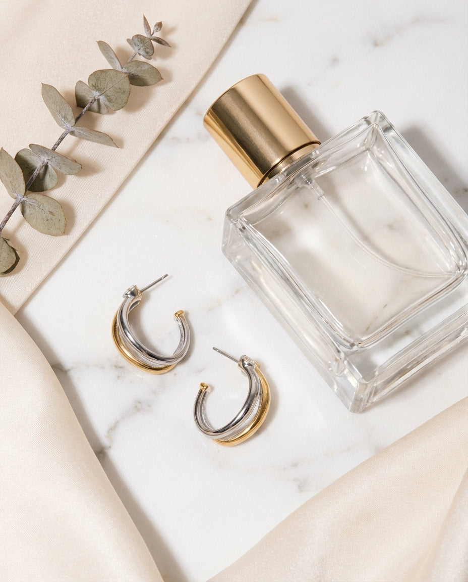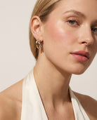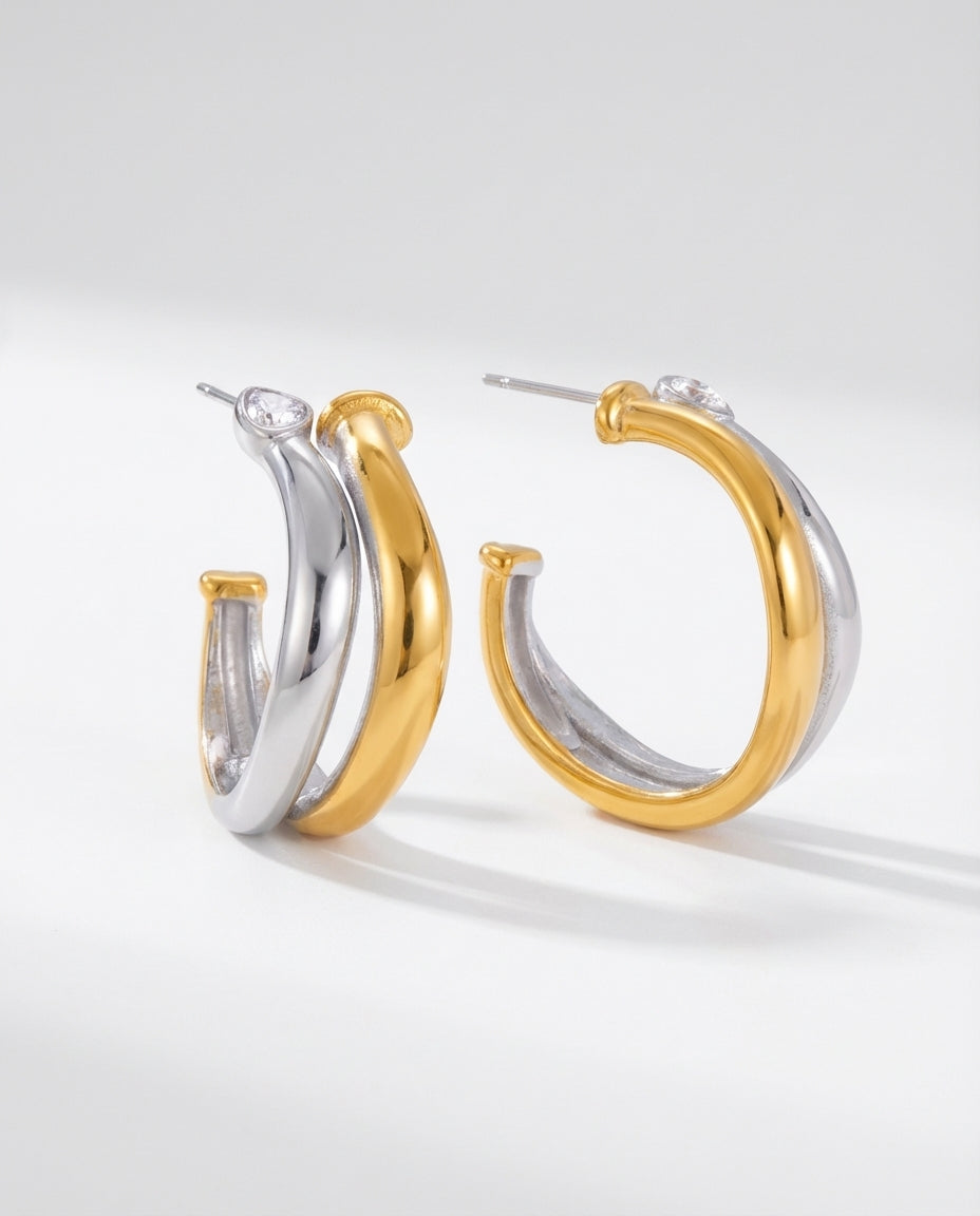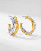 The Olivia Hoop Earrings feature a refined sculptural silhouette with a subtle mixed-tone finish, creating a modern statement piece designed for effortless everyday styling.