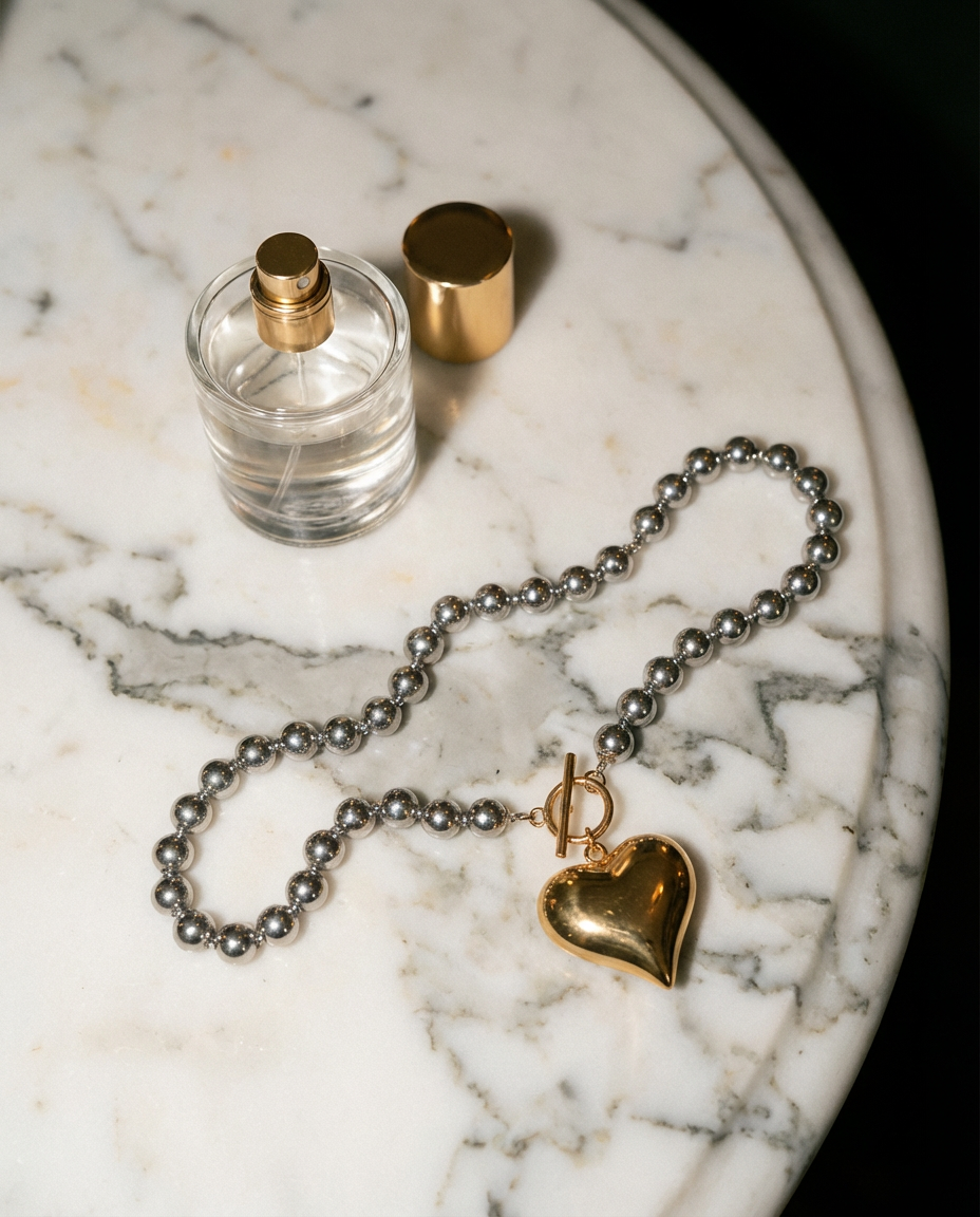The Amélie heart necklace you'll actually wear every day. Stainless steel that won't tarnish, fade, or turn your skin green.
