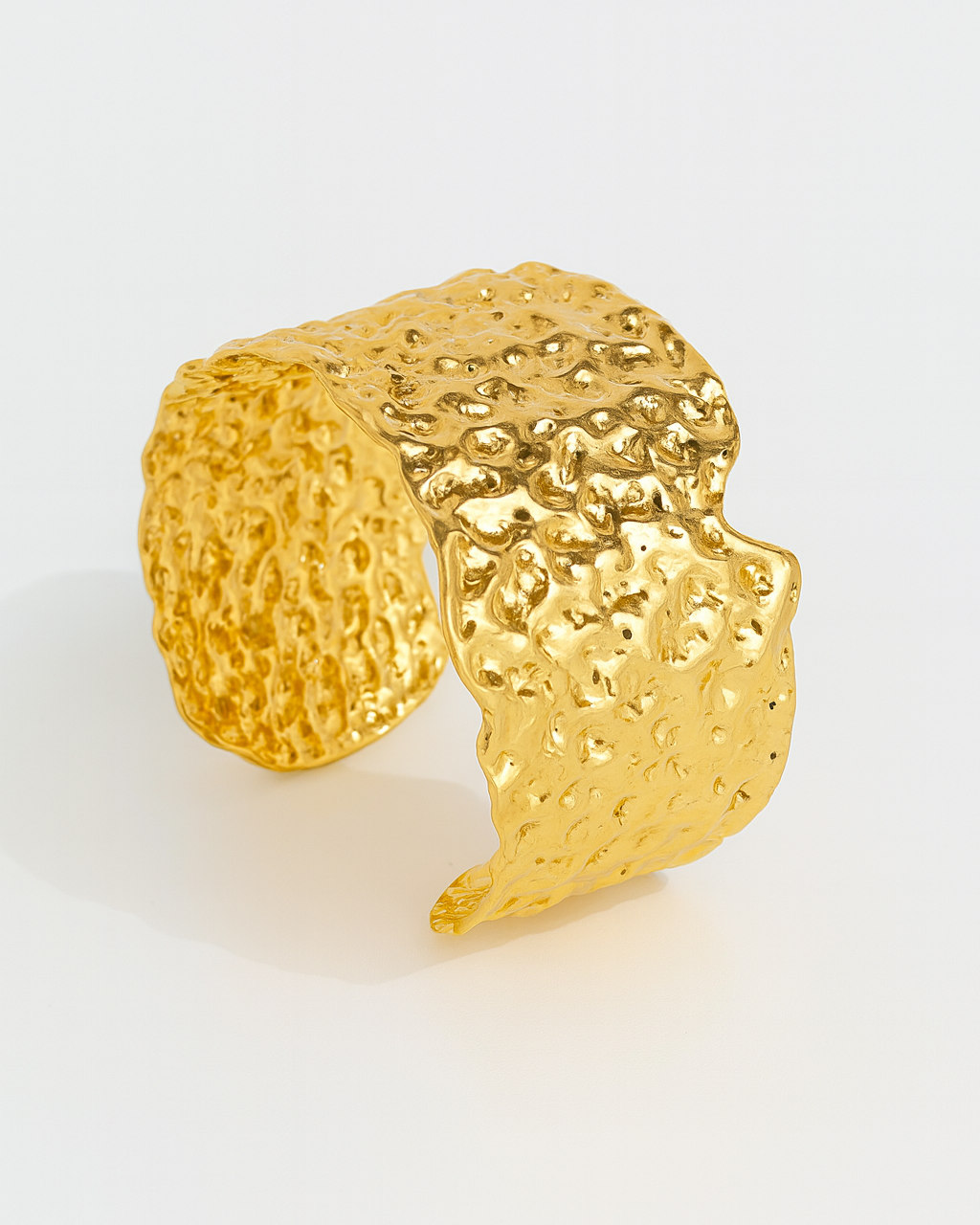 Make a bold statement. The Molten Texture Cuff is sculpted with organic, hammered texture and a high-polish gold finish. It’s chunky yet elegant. Designed to elevate any outfit.