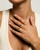 This stylish Alba Gold Stacker Ring is a timeless piece that adds versatile elegance to any look. Crafted with delicate gold lines, it balances strength and beauty while being perfect for everyday wear. Made from ethically sourced stainless steel-plated 14k gold, it’s designed to withstand water, sweat, and heat.