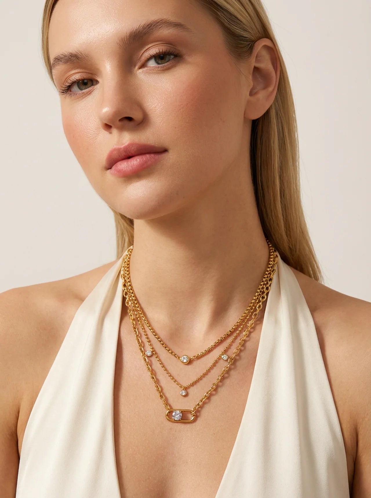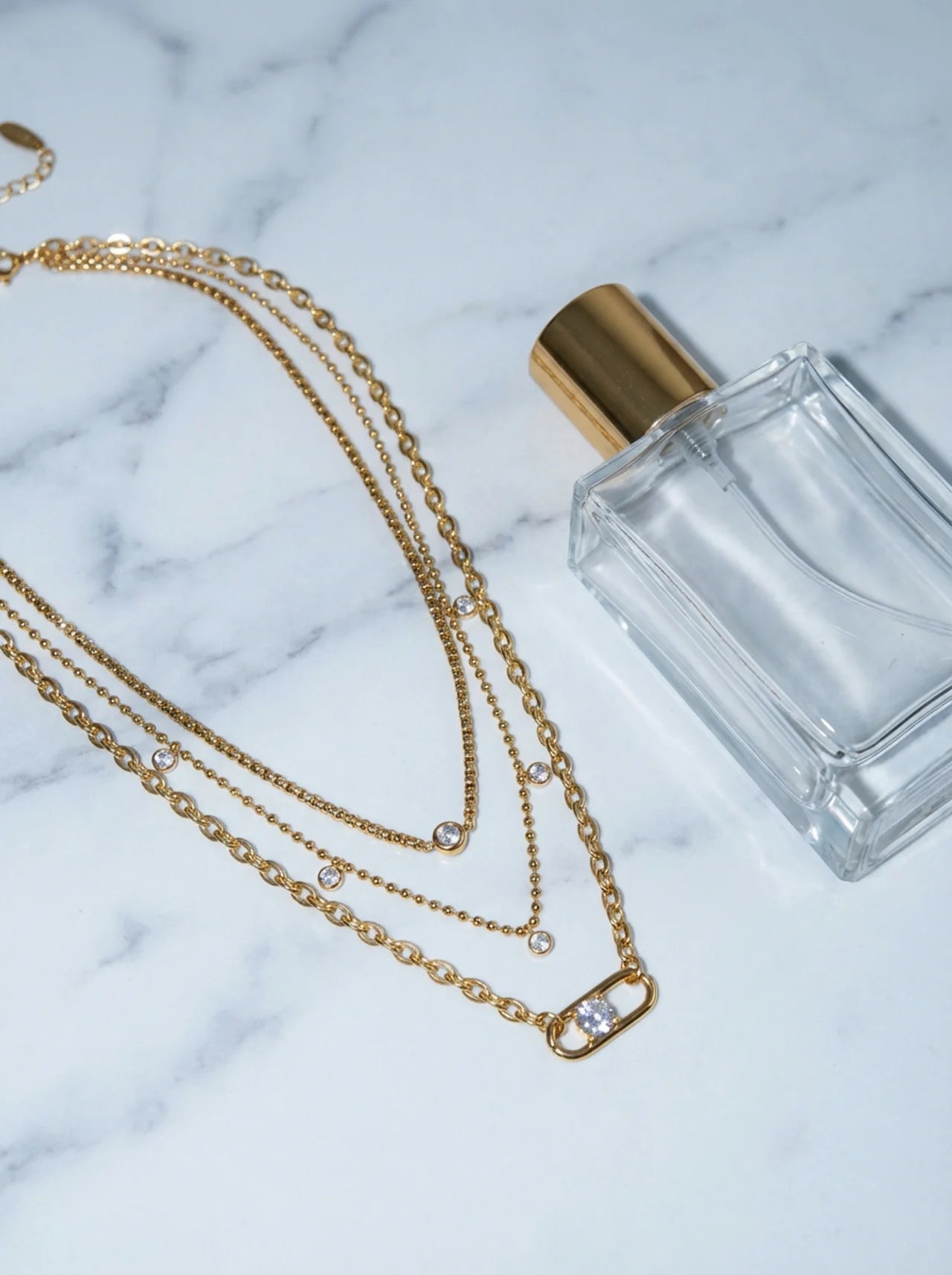 Un collier délicat à plusieurs couches avec un pendentif en zircon rond, conçu pour ajouter une subtile brillance et une élégance moderne à n'importe quel look.