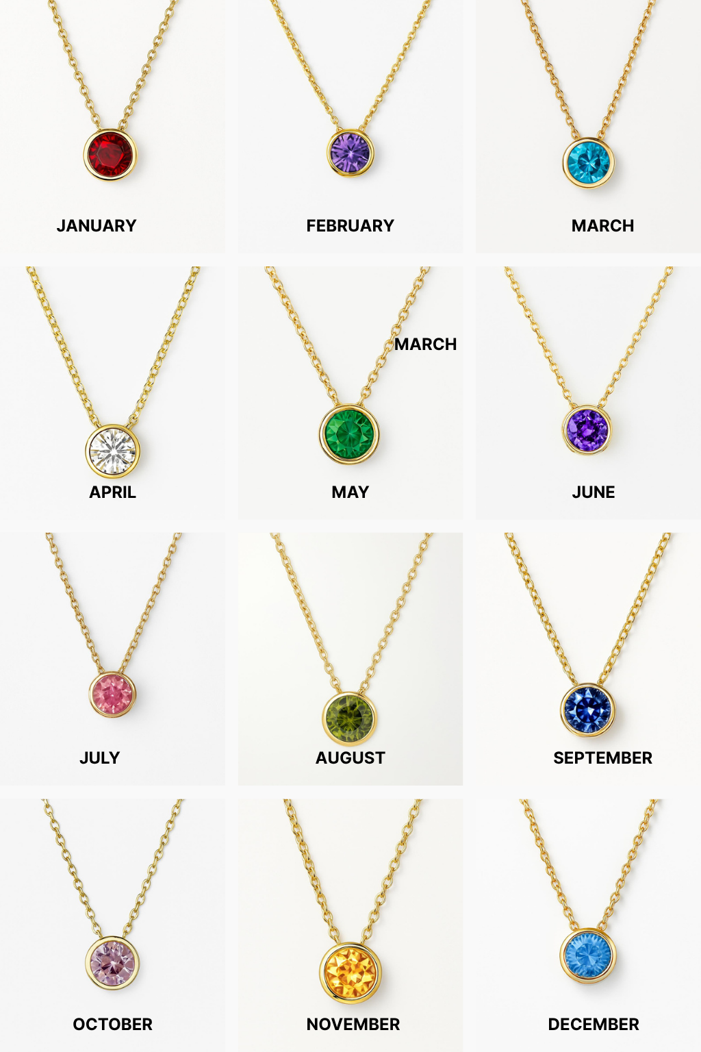 Celebrate your story with a dainty gold pendant set with a birthstone crystal for each month of the year. Choose your own, someone you love, or simply a colour that speaks to you. Crafted in waterproof, tarnish-resistant 18K gold-plated 316L stainless steel. Designed for everyday wear, forever