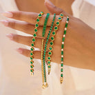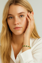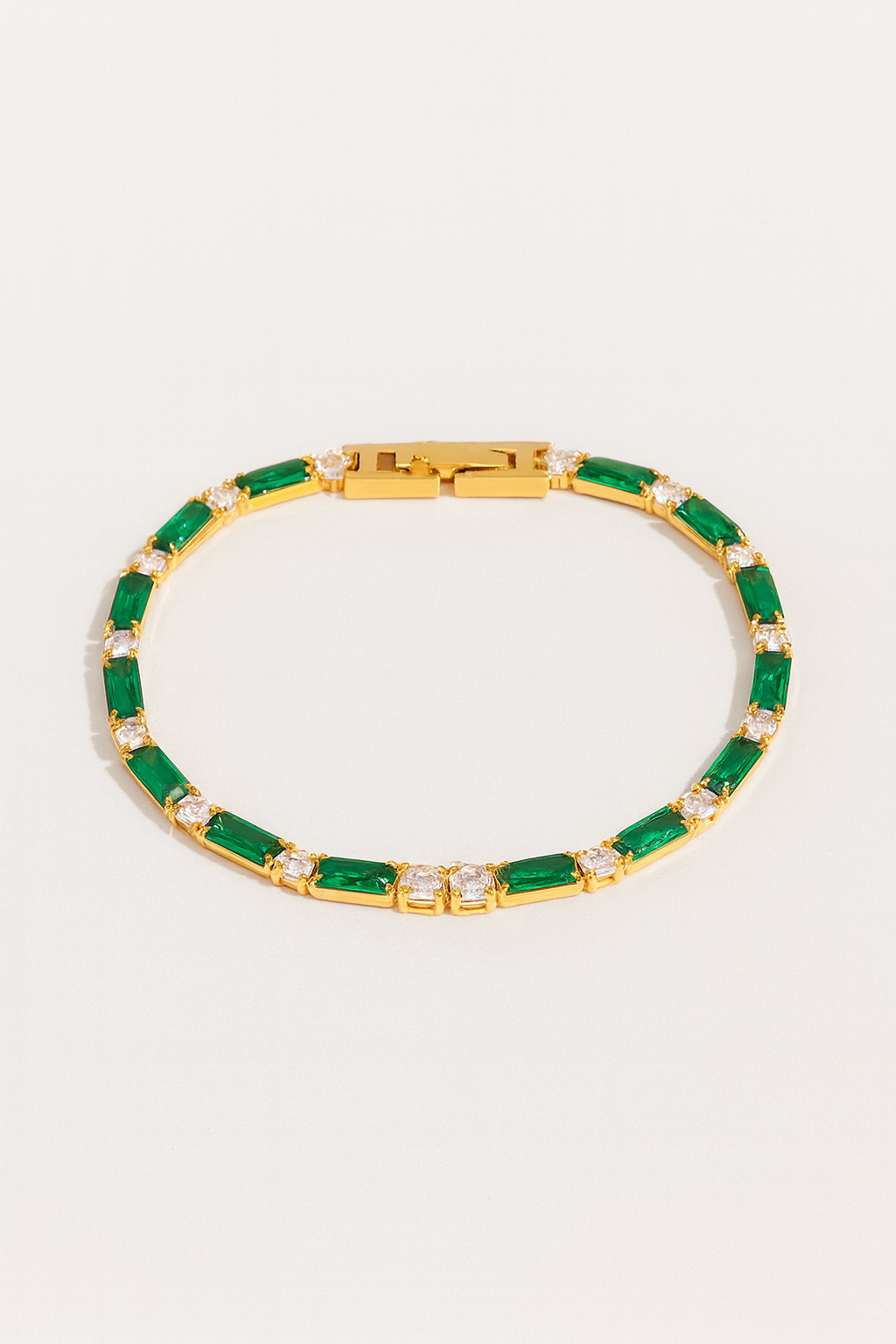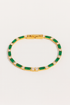 A timeless classic with a modern twist. Featuring alternating emerald and clear baguette stones, this dainty bracelet adds a luxe touch to any stack.