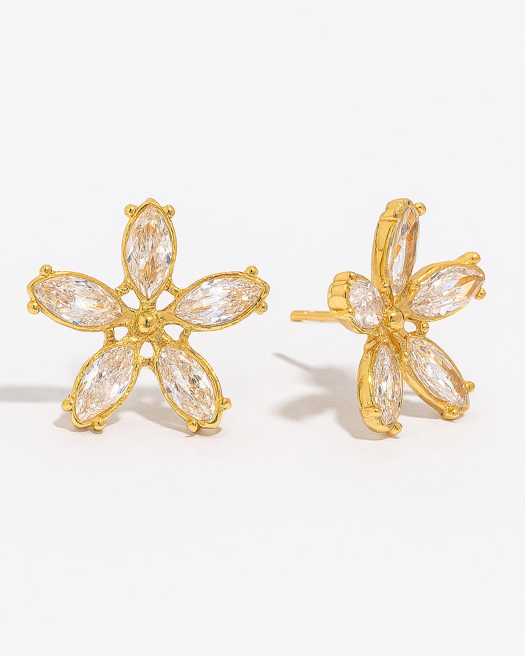 Add effortless elegance to your look with the Fleur Camille Earrings. Designed in a striking floral silhouette, these gold-tone stainless steel earrings feature sparkling marquise-cut crystals for a radiant, refined finish.