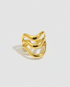 A bold statement ring with fluid lines and lasting shine — wear it solo or stacked for an elevated finish.
