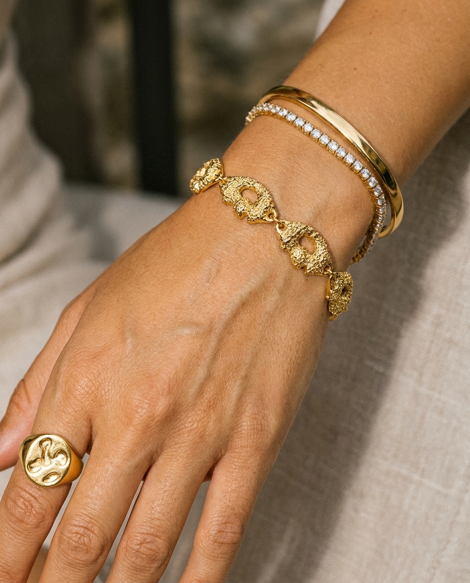That's why every Manjaras piece is crafted with a thick layer of genuine 18k or 14k gold, expertly bonded to a durable base metal.