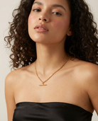 Bold. Sleek. Effortless. The Lana Necklace features a chunky gold chain finished with a minimal bar toggle pendant, striking on its own or layered with your daintier pieces. A staple for modern edge with timeless appeal.